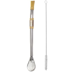 Desfrute seu chimarrão com qualidade, sabor e tradição! #Banhada a Ouro 18 Quilates #Ideal Para Compor Sua Cuia #Luxo, Requinte e Tradição Garantia: 10 Anos / Conteúdo: 1 Bomba para Chimarrão Aço Inox e 1 Escovinha para Higienização / Peso: 75g / Cor: Inox / Ref:DG852CA Dimensões Bomba: 3cm (C) x 1,1cm (L) x 24,5cm (A) Dimensões Escova: 1,5cm (C) x 1,5cm (L) x 25cm (A) Desenhos: Laçador, N. Sra. De Aparecida, Brasão Rio-grandense ou Cavalo Crioulo Cuidados: Não lavar com materiais abrasivos Acompanha: Escovinha para higienização Material: - Ouro: Anéis superiores e bocal da bomba são banhados 2x com ouro 18 quilates; - Aço inox 304: Material de alta resistência, não enferruja, não transfere odor e nem gosto. Cuidados: - Após o uso lavar com esponja macia e sabão neutro, guardar o produto seco. Garantia de 10 Anos: Se lavado somente com água corrente, sem materiais abrasivos ou palha de aço, a bomba terá longa vida útil e 10 anos de garantia contra oxidação. Esta é uma linda bomba para chimarrão e tereré, folhada a ouro 18 quilates! Produzida de forma artesanal com todo um zelo pela tradição, vem adornada com lindas estampas, deixando a você a oportunidade de escolher a que mais combina com você. Feita em aço inox 304, é extremamente resistente à corrosão tendo garantia de até 10 anos. Possui bojo tradicional em formato de pera, este é removível e facilita muito na hora da limpeza. Falando em limpeza, a bomba para chimarrão e tereré vem acompanhada de uma escova especial para higienizações internas deste tipo de acessório, evitando entupimentos indesejados na hora do seu mate. Luxo, requinte, tradição e qualidade estarão presentes em suas rodas de chimarrão com esta bomba.