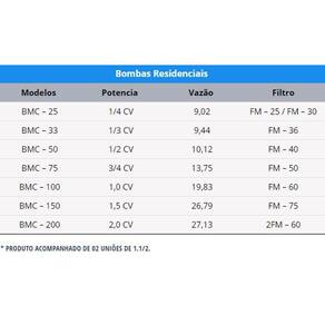 A Bomba para Piscina 1cv BMC-100 é um produto de funcionamento simples, e que deve ser instalado da maneira correta para evitar problemas futuros. O modelo é recomendado para piscinas que tenha até 113 mil litros de água.