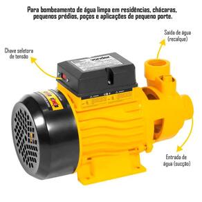Indicado para bombeamento de água isenta de sólidos (água limpa) em residências, poços, chácaras, praias, pequenos prédios, aplicações de pequeno porte, entre outras, respeitando a altura máxima para recalque de 53 metros (m.c.a.). Bivolt, possui rotor com sistema antitravamento em latão, além de protetor térmico.