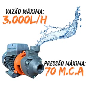 Motobomba Periférica Lepono APm75 1.0hp 220V Monofásica. Utilizada principalmente para abastecimento doméstico e pequenos prédios. Sistemas de pressurização de baixa pressão. Irrigação de pequeno porte. Sua principal característica é o bombeamento de água à grandes alturas e distâncias. Referência: 50000407100 VANTAGENS: Baixo custo, Grande versatilidade de usos. CARACTERÍSTICAS TÉCNICAS Bomba: Corpo em ferro fundido, Tratamento antiferrugem, Rotor periférico em bronze, Ponta de eixo em aço inox AISI 304 Antitravamento duplo em bronze, Temperatura máxima do líquido: 60C, Sucção máxima: 8 mca, Selo mecânico em grafite cerâmica buna Motor: Protetor térmico, Classe de proteção: IPX4, Classe de isolação: F, Temperatura ambiente máxima: 40C. Modelo do Selo Mecânico: Grafite Cerâmica Buna. Marca: Lepono. Conteúdo da embalagem: 1 Motobomba. Dimensões aproximadas do produto: 19,0 x 14,0 x 30,0 cm (A x L x C). Dimensões aproximadas da embalagem: 22,0 x 19,0 x 34,0 cm (A x L x C). Peso aproximado do produto: 5 Kg. Peso aproximado da embalagem: 5,5 Kg. Informações Adicionais: Maior qualidade e durabilidade no dia a dia. Produtos de decoração não inclusos. Imagens meramente ilustrativas. As cores dos objetos podem sofrer alterações devido a luminosidade, configurações do monitor e até mesmo a percepção do usuário. Ean: 7908172500492