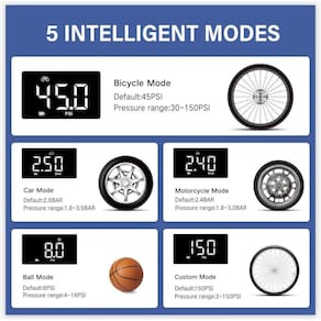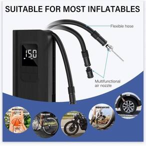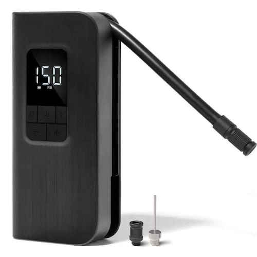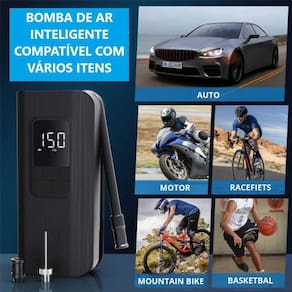 Bateria de longa duração carrega até 4 pneus de carro, 12 de motocicleta, 18 de bicicletas e até 40 bolas de basquete.
