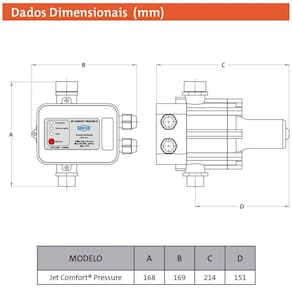 O Jet Comfort Pressure System é um sistema composto por um controlador eletrônico de pressão e uma motobomba.