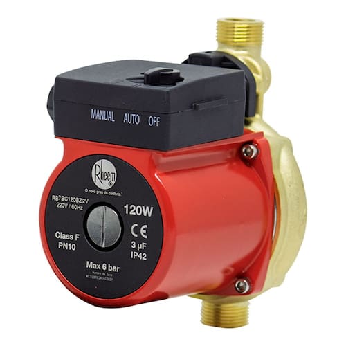 A Bomba de Pressurização Rheem 120W é a solução perfeita para aumentar a pressão da água em sistemas com aquecedores de passagem, garantindo um banho mais confortável e estável. Compacta, silenciosa e eficiente, oferece função automática com fluxostato incorporado, além da possibilidade de uso manual.