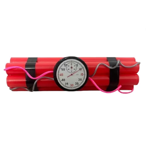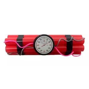 Bomba relogio para decoração de mesa no formato de dinamite.