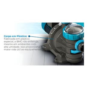 E fundamental que a água da sua piscina seja limpa e saudável, podendo assim se divertir com família e amigos. A bomba BMC-75 de 3/4 CV, proporciona isso para você, com um sistema de purificação tecnológico e avançado no qual possui um efeito eficaz na limpeza da sua piscina.