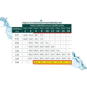 A Bomba para Piscina BM foi desenvolvida pensando em uma maneira prática e simples de ser instalada, o que torna o processo de instalação muito mais fácil. O modelo é recomendado para piscinas que tenham até 272 mil litros de água, nas quais ele consegue desempenhar o seu máximo. A Bomba para Piscina BM-300 conta com as tecnologias mais avançadas da Sodramar para proporcionar momentos de lazer muito mais agradáveis para sua família em sua piscina. O modelo é extremamente eficiente, purificando a água com muita facilidade e praticidade. Outra característica marcante da Bomba é o fato de ela ser extremamente resistente e ter uma vida útil muito longa, devido aos seus componentes de alta qualidade. Produto acompanhado de 02 uniões de 1.1/2.