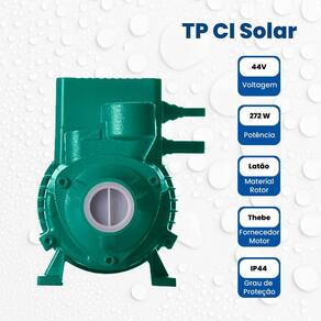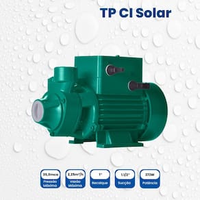 Construção Civil: Uso na construção civil/predial em geral. Acompanha bóia elétrica: Não Acompanha válvula de retenção: Não Altura: 16,5 cm Altura manométrica total: 35 mca Ambiente Principal: Jardim e Varanda Composição: Carcaça da bomba em ferro fundido GG-20. Rotor fechado em termoplástico. Anel O'ring de vedação da carcaça em Buna N. Selo mecânico: Faces em grafite e cerâmica. Mola em inox 304 e elastômero (borracha) em Buna N. Comprimento: 26 cm Conexão de entrada/saída: Sucção 1.1/2" x Recalque 1" Ergonômico: Não Funcionamento: Energia Solar Itens Inclusos: BOMBA SOLAR PERIFÉRICA TP CI 272 W Largura: 13,5 cm Manual de Montagem e Instalação: https://product-hub-prd.madeiramadeira.com.br/930589/documents/b604ed7a-861b-4793-9cbe-7e20a68a88822209762578317232346969889.pdf Material Principal: Ferro Fundido Modelo: BOMBA SOLAR ÉCAROS PERIFÉRICA TP CI 272 W MOTOR THEBE IP44 44V Necessita Montagem: Não Origem do Produto: Importado Peso: 4,2 kg Profundidade de sucção: 4 m Recomendações de Uso, Manutenção e Limpeza: Verifique nosso Manual de Manutenção Temperatura Máxima da Água: 40 °C Tipo de bomba de água: Periférica Vazão máxima: 2.250 L/h