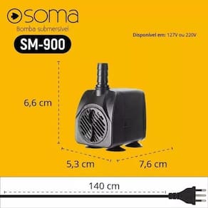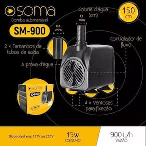 Bomba sub soma aquarios sm- 900 900 l/h 127v Nova linha de bombas submersíveis soma. Modelo sm-900