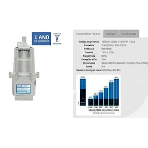 - Vazão (Litros por hora): 1400 Max, 400 Min.