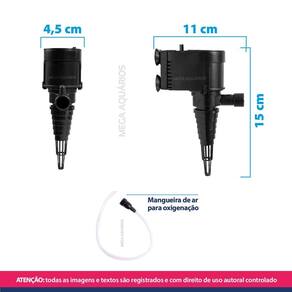 Bomba bombinha submersa Jad Boyu SP-1300 9W 400L/h para aquário, cascatas pequenas e fontes de água Bombinha submersa blindada de baixo consumo de energia, design compacto, auxilia na oxigenação e na circulação da água. Preparada para ficar ligada constantemente. Ela é totalmente vedada, o que a torna segura para danos elétricos em contato com a água. Características: Um único equipamento com duas funções - bomba para circulação de água e oxigenador Bombinha submersa silenciosa e compacta Baixo consumo de energia Possui ventosas para fixação Acompanha mangueira de ar para auxílio na oxigenação Fácil instalação, limpeza e manutenção Resistente Durável Impeller de fácil Serve como peça de reposição para o filtro Jad ou Boyu SP-1300I SP-1300II É possível encaixar até 2 refis de filtro esponja biológico modelo próprio Especificações técnicas: Marca: Jad Boyu a marca será enviada conforme disponibilidade Modelo: SP-1300 Potência: 9W Voltagem: Escolha a voltagem no botão do anúncio Hmax: 0.5m altura máxima que a bomba consegue elevar a água Vazão: 400L/h Indicado para aquários de até 80L Medidas: 4,5 x 15 x 11cm larg x alt x profundidade Peso: 317g Tamanho do fio: 155cm Marca JAD / Boyu As marcas Jad e Boyu pertencem ao mesmo fabricante, os produtos são exatamente iguais e chegam ao país por empresas diferentes, cada uma com um direito de uso de marca. Aplicação: Circulação de água em pequenos aquários Circulação de água em laguinhos Auxílio na oxigenação de água de pequenos lagos e aquários Elevar água do sump para aquário Direcionar água para sump Direcionar água para filtro tipo cânister Direcionar água para filtro UV ultravioleta Fontes de água com até 40cm de altura Bebedouro grande para gatos Hidroponia Nota: Nunca deixe a bomba ligada sem água em circulação, isso queimará a bomba em poucos minutos. Serve para fazer bolhas no aquário Não serve, o objetivo da bomba é de circulação de água. Para bolhas de ar é necessário um compressor de ar para aquário. Até quanto ela consegue elevar a água Cerca de 40 centímetros Obrigado pela visita e boas compras ATENÇÃO: Nossas imagens e textos são registrados e com direitos de uso reservados a essa loja e as lojas parceiras devidamente autorizadas em contrato.