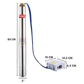 Ela tem diâmetro de 3, mais especificamente 76,2, o que permite que ela possa ser instalada em tubos de 100 mm. Seu motor de 0,5 hp, 9 estágios e recalque de 1 que proporcionam uma vazão máxima superior a 60 litros por minuto, atingindo uma altura manométrica máxima de 50 m.c.a.. Ela oferece melhor desempenho que as bombas injetoras com economia de energia.