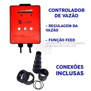 Principais Características - Bomba ECO com baixo consumo de energia, economia superior a até 65% em relação às bombas concorrentes. - Apresenta trava de segurança no rotor sistema de segurança contra funcionamento a seco, em caso de falta de água . Com chip inteligente que desliga a bomba em caso de falta de água. - Contém moderno controlador externo que permite ajuste da vazão e função de pausar o funcionamento por 5 minutos, para limpeza ou alimentação dos peixes. - Elevado desempenho com grande fluxo de água e coluna dÁgua. - Equipamento monofásico com modelos 110v e 220v. - Equipamento apresenta corrente alternada e não pode ser ligado em NoBreak. Obs.: Apesar do modelo AC não ser compatível com Nobreak, também forcemos o modelo DC bivolt, com corrente contínua e compatível com NoBreak. - Bomba de funcionamento silencioso. - Eixo cerâmico ante corrosão, não enferruja e permite longa vida útil ao equipamento. - Perfeita para lagos, fontes, chafarizes, sumps de aquário, entre outras aplicações. - Diferentes tamanhos de conexões, flexibilidade para diferentes diâmetros de mangueiras e tubulações. - Comprimento da fiação adequado para instalações distantes: comprimento do cabo de energia de 2,5m e do cabo do controlador 1,4m. - Pode ser tanto em aquários de água doce como também de água salgada, por não conter nenhum elemento de cobre. - Equipamento de fácil manutenção, não é necessário nenhum uso de ferramentas especiais para desmontar, mais fácil de limpar e fazer manutenções preventivas. Descrição Toda a linha AC PUMP Ocean Tech se destaca pela economia de energia e pelas quatros funcionalidades que são extremamente úteis: A primeira é o controle eletrônico de vazão. Muitas pessoas ficam na dúvida sobre a vazão ideal, a vazão que o seu sistema suporta e a possibilidade de ampliação futura dos seus projetos. Com essa regulagem você pode usar uma bomba mais forte do que o necessário para o momento e regular a vazão ideal através do controlador eletrônico,com o simples apertar de 1 botão, dispensando a necessidade de registros que Estrangulam A bomba, fazendo com que ela trabalhe sobrecarregada. A segunda é o botão Feed. Quando pressionado ele interrompe o funcionamento da bomba por 5 minutos. Tempo suficiente para realizar pequenas manutenções no seu filtro ao alimentar os peixes sem que a comida seja sugada para o filtro. A terceira é uma das mais importantes, a função anti travamento. Caso algo grande bloqueie a rotação do impeller, esgotadas as tentativas de destravamento,o controlador interrompe o funcionamento, evitando que o seu equipamento seja danificado. A quarta também é uma função de segurança, a função anti secamento. No caso de secamento do compartimento onde a bomba está instalada, após algumas tentativas de normalização do sistema, o controlador desativa o funcionamento, garantindo que o equipamento não exceda sua rotação máxima, superaqueça e seja permanentemente danificado. Recomendações Se a tomada estiver abaixo do nível da bomba, faça uma curva no cabo conforme imagem abaixo para prevenir que a água escorra pelo o cabo e molhe a tomada ocasionando um curto circuito. Cuidados Desligar a bomba antes de manusear; Não ligar a bomba fora da água; Não levantar a bomba pelo fio, isso evita o rompimento do cabo interno; Não usar em líquidos quentes acima de 40º ; Manter totalmente submersa quando em operação; A bomba desligará dentro de 2 minutos em caso de falta de água por 2 minutos. Informações Técnicas Verifique abaixo todas informações de sua nova bomba submersa: Modelo: AC-20000 Potência: 200W Vazão: 20.000l/h Coluna D'água: 7m Conexões: 2025303540mm Dimensões CxLxA : 30x13x16cm Cabo Energia: 2,5m Cabo Controlador: 1,4m