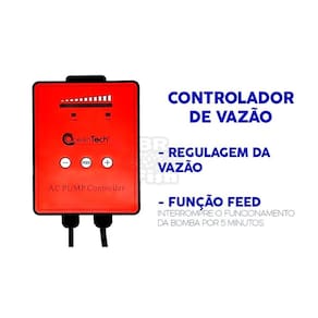 a primeira é o controle eletrônico de vazão. Muitas pessoas ficam na dúvida sobre a vazão ideal, a vazão que o seu sistema suporta e a possibilidade de ampliação futura dos seus projetos. Com essa regulagem você pode usar uma bomba mais forte do que o necessário para o momento e regular a vazão ideal através do controlador eletrônico, com o simples apertar de 1 botão, dispensando a necessidade de registros que estrangulam a bomba, fazendo com que ela trabalhe sobrecarregada. A segunda é o botão feed. Quando pressionado ele interrompe o funcionamento da bomba por 5 minutos. Tempo suficiente para realizar pequenas manutenções no seu filtro ao alimentar os peixes sem que a comida seja sugada para o filtro. A terceira é uma das mais importantes, a função anti-travamento. Caso algo grande bloqueie a rotação do impeller, esgotadas as tentativas de destravamento, o controlador interrompe o funcionamento, evitando que o seu equipamento seja danificado. A quarta também é uma função de segurança, a função anti-secamento. No caso de secamento do compartimento onde a bomba está instalada, após algumas tentativas de normalização do sistema, o controlador desativa o funcionamento, garantindo que o equipamento não exceda sua rotação máxima, superaqueça e seja permanentemente danificado. Recomendações