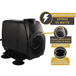 Silenciosa e eficaz, esta moto bomba produz movimentação de água de 3000 litros/hora, com baixo consumo de energia elétrica, apenas 55 watts. Possui 4 ventosas anti-ruído para uma excelente fixação. Possui regulador de vazão da água como indicado na foto do anúncio.