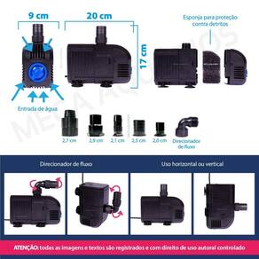 Aplicação: Circulação de água em aquários Circulação de água em lagos / laguinhos Elevar água do sump para aquário Direcionar água para sump Direcionar água para filtro tipo cânister ou filtro UV ultravioleta Fontes de água / chafariz / cascata com até 2,8m de altura Hidroponia