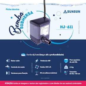 Bomba Submersa Sunsun Hj-611 450Lh Aquário 90L - 110V