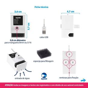 Indicado para aquários de até 20L / fontes e bebedouros de até 35cm de altura