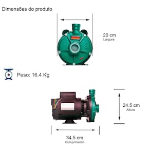 Motobomba Centrífuga Monoestágio - Monobloco - Motor Monofásico 60Hz 3500rpm - Bocais com rosca BSP, Sucção 1.1/2"" x Recalque 1".