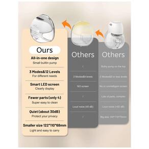 A bomba tira leite mãos livres Mumgaroo vem com tela LED, que exibe claramente o tempo de bombeamento, modo, nível de intensidade e status da bateria. Você pode saber tudo o que deseja com clareza e sem mais suposições cegas sobre o modo e o nível. Em comparação com as telas sensíveis ao toque, as teclas físicas têm uma vida útil mais longa e são menos propensas a danos. Se precisar, você também pode usar o ajustador de sutiã incluído para um melhor ajuste.