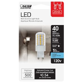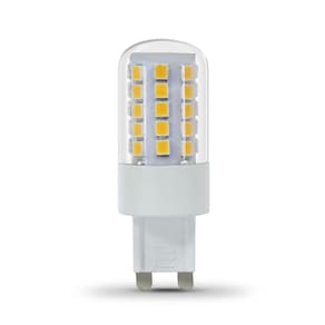 Bombilla LED Feit Electric G9 regulable, equivalente a 40W, 500 lúmenes, luz de día T4 que reemplaza halógenas para candelabros, luces de tocador o lámparas de escritorio, modelo BPG940/850/LED. - 5000K - LUZ DE DÍA - REGULABLE - 5.5 cm de altura x 2.0 cm de diámetro - Encendido instantáneo al brillo máximo con rendimiento relativamente fresco. - Eficiencia energética: hasta un 89% menos de consumo comparado con bombillas incandescentes estándar. - Uso: Candelabros y decorativo