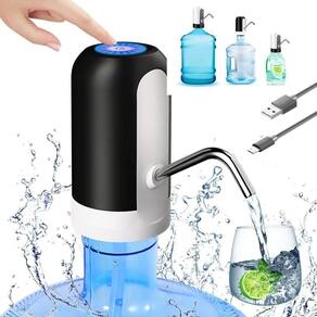 Prático e simples de beber água, podendo ser levado para qualquer lugar e ser utilizado em qualquer galão. Recarregável através de fontes de celular, bivolt.