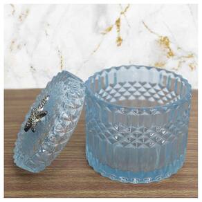 Bomboniere De Vidro Grosso Azul Com Detalhe Em Metal -