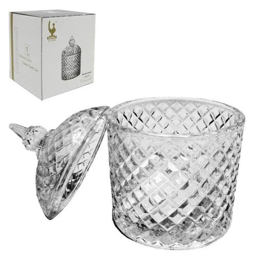 Bomboniere de vidro relevo com tampa 14x9,5cm de na caixa Ean: 7898702290385 Validade: indeterminada Tamanho aproximado da bomboniere: 14x9,5cm de Tamanho aproximado da caixa: a:11,5xl:10,5cm Peso aproximado: 565g Tipo de produto: bomboniere relevo com pé e tampa na caixa Cor: transparente Composição: vidro