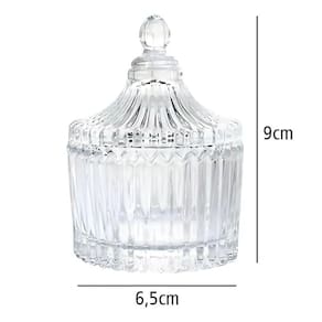 Apresentamos o Potiche De Vidro, um item de decoração que combina elegância e funcionalidade. Com suas dimensões de 6,5 cm x 9 cm, este potiche é perfeito para armazenar pequenos itens, mantendo-os seguros e organizados, ao mesmo tempo em que adiciona um toque de sofisticação ao seu espaço.
