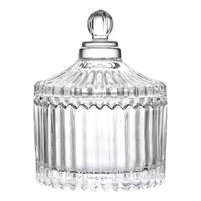 A cor transparente deste potiche permite que ele se encaixe perfeitamente em qualquer decoração. Seja na cozinha para armazenar temperos, no banheiro para guardar itens de higiene pessoal, ou na sala de estar como um objeto de decoração, este potiche é versátil e prático.