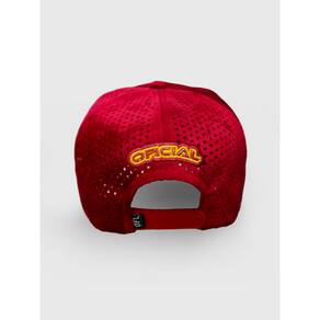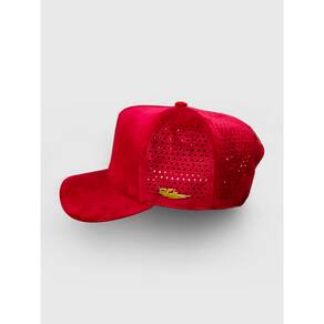 Boné Aeroflex Furado a lazer Tecido: Veludo Frente: Silk Lateral: Silk Aba curva moldável Fecho SNAPBACK por pinos de pressão ajustável na parte traseira. Profundidade: entre 14 a 16cm, medindo do pino no topo do boné e seguindo pela costura até a sua base
