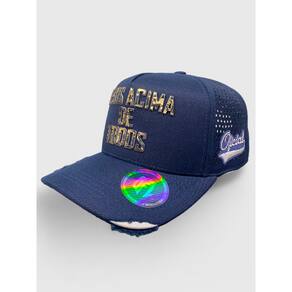 Boné Aeroflex Tecido: Poliéster Frente: Silk Alto Relevo Lateral: Bordada Aba curva moldável / Aba Destroyer Fecho SNAPBACK por pinos de pressão ajustável na parte traseira. Profundidade: entre 14 a 16cm, medindo do pino no topo do boné e seguindo pela costura até a sua base.
