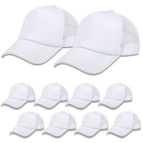 -?O pacote inclui?Pacote com 10 chapéus Sublimation Blanks, a frente do boné de caminhoneiro é desenhada em branco. Você pode escolher seu padrão, logotipo ou foto favorito para desenhar no chapéu por meio de serigrafia, impressão por transferência térmica, bordado, bordado 3D e outras formas. Usando seu próprio chapéu, você pode se destacar na multidão