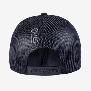Boné confeccionado em poliéster com recortes em tela de poliéster. Modelo trucker. Possui aba curva maleável com detalhe em viés refletivo, logo Fila Letter refletivo no painel frontal, fechamento com regulador de plástico, logo Fila Letter bordado na parte traseira e acabamento interno em viés personalizado Fila Letter.