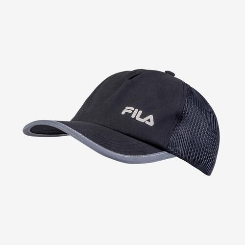 Boné confeccionado em poliéster com recortes em tela de poliéster. Modelo trucker. Possui aba curva maleável com detalhe em viés refletivo, logo Fila Letter refletivo no painel frontal, fechamento com regulador de plástico, logo Fila Letter bordado na parte traseira e acabamento interno em viés personalizado Fila Letter. Categoria Running Cor Black Gênero Unisex Detalhes do produto CORPO: 100% - POLIESTER Marca: Não Informado