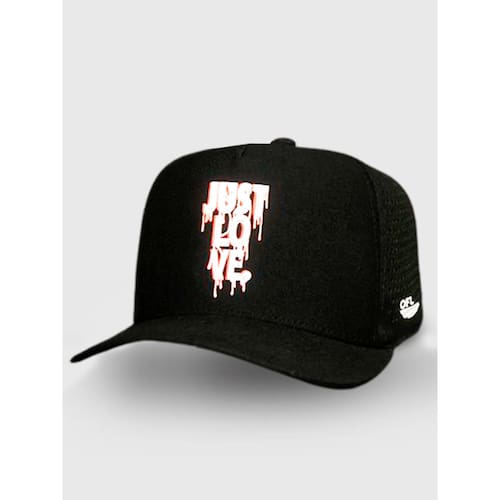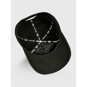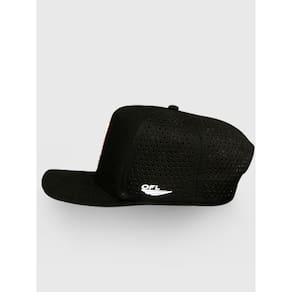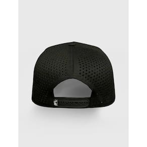 Tecido: Poliéster Preto Boné Snapback Estampa frente Silk screen alto relevo Aba curva moldável Fecho SNAPBACK por pinos de pressão ajustável na parte traseira. Profundidade: 10cm, medindo do pino no topo do boné e seguindo pela costura até a sua base.