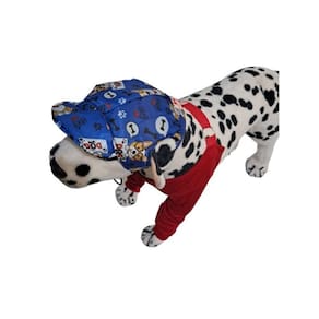 Esse boné está disponível no tamanho G e na cor azul. Para escolher o tamanho ideal para o seu pet, basta medir a circunferência da cabeça, a distância de orelha a orelha e da aba até a nuca.