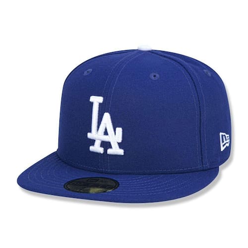Boné new era 5950 los angeles dodgers game cap, aba reta; boné fechado, fitted 59fifty cor azul/branco composição: 100% poliéster logo frontal bordado bordado na lateral e na traseira losangelesdodgers e licenciado oficialmente pela mlb - major league baseball;