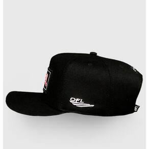 Boné Snapback Tecido: Poliéster Frente: Aplique com Bordado Lateral: Bordado Aba curva moldável Fecho SNAPBACK por pinos de pressão ajustável na parte traseira. Profundidade: entre 14 a 16cm, medindo do pino no topo do boné e seguindo pela costura até a sua base.