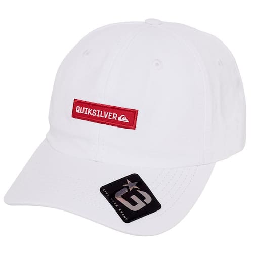 Boné Quiksilver feito em tecido poliamida leve, patch silkado centralizado no painel frontal, silk logo no painel lateral esquerdo de quem veste, etiqueta aplicada no interno e na lateral do fecho traseiro e fecho traseiro do próprio tecido com tiras duplas aderentes.