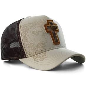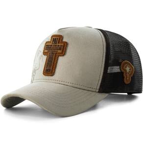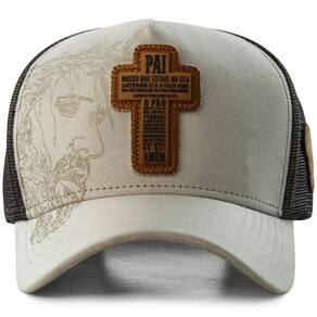 Boné Sacudido`s - Cruz - Pai Nosso - Suede Bege Claro - Preto - UN