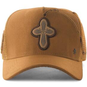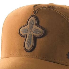 Boné Sacudido's - Cruz - Terço - Suede Caramelo