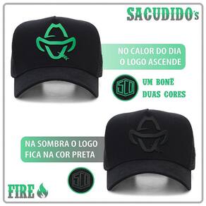Boné Sacudido`s - Logo estilizado Fogo - Preto e Verde Limão - Preto - UN