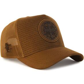Boné Sacudido's - Medalha de São Bento - Suede Caramelo - Oração