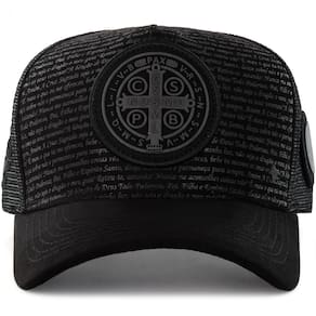 Boné Sacudido`s - Medalha de São Bento - Suede Preto - Oração - Tamanho Especial - Preto - UN
