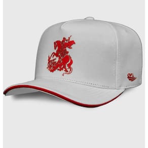 Boné Snapback Tecido: Poliéster Frente: Silk relevo alto Lateral: Bordada Aba curva moldável Fecho SNAPBACK por pinos de pressão ajustável na parte traseira. Profundidade: entre 14 a 16cm, medindo do pino no topo do boné e seguindo pela costura até a sua base.