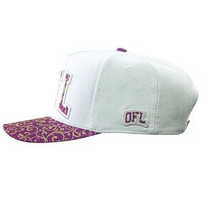 Boné Snapback Tecido: 100% Poliéster Frente: Aplique Bordado Lateral: Bordada Aba curva moldável Fecho SNAPBACK por pinos de pressão ajustável na parte traseira. Profundidade: entre 14 a 16cm, medindo do pino no topo do boné e seguindo pela costura até a sua base.