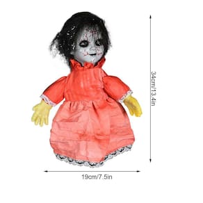 Barra de luz de indução de controle de voz de boneca ambulante pingente de casa assombrada Produto -Cor: Branco e vermelho -Material: Plástico -Tamanho: 18 x 14 x 30 cm/7,09 x 5,51 x 11,81 polegadas - Bateria: 3 pilhas AA - Feito de materiais de alta qualidade, saudável, seguro e durável, pode ser por um longo tempo. - Possui rosto horrível, vestindo roupas cinza surradas. A aparência assustadora trará a você uma atmosfera completa de halloween. - Depois de começar, seus olhos brilharão, ele pode andar automaticamente e fará um som assustador, efeito muito realista e assustador é muito bom. - Adereços assustadores de Halloween, ótimo para decorações de Halloween, festas familiares, kit de brincadeiras, jogos de pegadinhas, etc. - A boneca fantasma elétrica é um ornamento perfeito para festa de Halloween e decoração de casa assombrada Contém 1 x boneca de Halloween sem bateria