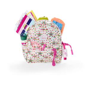 Conjunto de mochilas American Girl Truly Me de 18 polegadas Doll Star Student com tablet Doll e telas reversíveis, para maiores de 6 anos — Esta mochila American Girl x STATE Bags com estampa de estrelas arco-íris apresenta zíper alternado, etiqueta com logotipo, bolso frontal com zíper e alças acolchoadas com alças em camadas na parte superior. Os acessórios cabem no bolso principal com zíper e os bolsos laterais são projetados para segurar a garrafa de água com estampa de coração. - Um tablet do tamanho de uma boneca que pode ser colocado na vertical e exibe uma tela educacional reversível representando temas científicos - Uma pasta listrada colorida e um conjunto de três planilhas que cabem dentro - Um transferidor falso rosa translúcido, uma lapiseira bicolor e uma maçã verde falsa - Um mini desinfetante para as mãos falso com um clipe funcional que pode ser encaixado na mochila