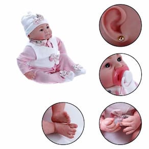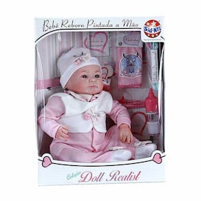 Boneca Articulada - 45 Cm - Doll Realist - Layla - Sid-Nyl: as crianças vão se divertir muito brincando com a boneca da coleção Doll Realist Sid-Nyl. Articulada e pesada como um bebê de verdade, a Boneca Layla Doll Realist precisa de todo o cuidado e amor do mundo. A Boneca Layla tem cabeça, braços e pernas em vinil siliconado, corpinho macio produzido tecido e pelúcia. Para deixar a brincadeira mais divertida, a boneca vem acompanhada de acessórios: copinho, brinco e chupeta magnética, naninha, fralda descartável e certidão de nascimento. Com imã interno na boca e na chupeta. Ao colocar a chupeta na boca da boneca, ela fica grudada como se a boneca estivesse chupando a chupeta. Com 45 cm de altura, a Doll Realist Layla também tem movimentos articulados para fazer poses divertidas durante a brincadeira. Encaixe em seu nenezinho sua naninha personalizada para um sono confortável, cubra ela com a manta para se manter quentinha e aconchegante, dê leitinho com sua mamadeira quando ela sentir fome, use a chupeta caso ela começa a chorar e não se esqueça de trocar as fraldinhas! Preencha sua certidão de nascimento para individualizar sua bonequinha. Cuide, eduque e aprenda muito com sua nova bebe reborn! • Detalhes: - Pintada a mão - Inúmeros acessórios - Incríveis detalhes realísticos - Brincos fofinhos carismáticos - Mais de 4 pontos de articulação - Inspirada em um bebezinho de verdade - Chupetinha magnética para maior estabilidade - Manual de cuidados para sua bebezinha crescer feliz - Certidão de Nascimento para individualizar sua bebezinha - As crianças podem levar a boneca Layla para onde quiserem INFORMAÇÕES: • Produto: Boneca Doll Realist Layla • Marca: Sid-Nyl Brinquedos • Coleção: Doll Realist • Tipo: Boneca Bebe Rebon Realista • Categoria: Bonecas e Cia • Tamanho (C x A x L): 27 x 45 x 13.5 cm • Volume (Peso): 1.180 kg • Conteúdo: 1 Boneca, 1 chupeta, 1 fralda, 1 naninha, 1 mamadeira, 1 manta, 1 manual de cuidados e 1 certidão de nascimento • Recomendação: para crianças a partir de 3 anos de idade ESPECIFICAÇÕES: • Referência: 1174 • Código de Barras: 7897547711741 • Embalagem (C x A x L): 32 x 45.5 x 22 cm • Embalagem (Peso): 1.780 Kg • Composição / Material: Vinil siliconado: cabeça, braços e pernas Tecido e pelúcia: corpo - Toy/Velboa 100% pelúcia Cabelos importados • Registro: 006569/2021 • Certificado: Órgãos Autorizados - OCP´S (Organismos de Certificação de Produtos) BENEFÍCIOS DE BRINCAR: - Eleva a autoestima - Exercita a memória - Estimula o raciocínio - Exercita o imaginário - Desenvolve a criatividade - Desenvolve percepção visual - Desperta a atenção e curiosidade - Desenvolvimento neuropsicológico - Estimula habilidades motoras básicas - Incentiva a comunicação e linguagem - Desenvolve aspectos emocionais e afetivo - Estimula o reconhecimento de formas e cores AVISO: - As imagens são meramente ilustrativas - Os tamanhos, pesos e medidas são aproximados - As cores e estampas dos produtos podem ter variações - As informações são de responsabilidade do fabricante ou fornecedor
