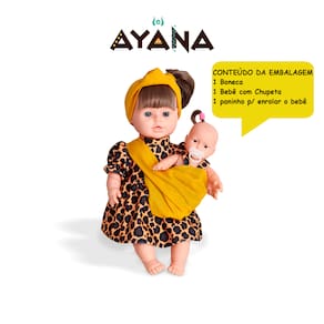 Boneca Articulada - Ayana - Adijomar: Um lindo conjunto de bonecas maravilhosas: mãe e filha com roupas em estilo africano. Duas lindas bonecas com características únicas e diferencias. São super fofas, graciosas e gostosas de abraçar, pois são confeccionadas em vinil atóxico e macio de alta qualidade. A brincadeira de boneca estimula a interação de pais e filhos, a coordenação manual, a criatividade e imaginação da criança. Tornando ainda mais realista a experiencia da brincadeira, as bonecas acompanham uma chupetinha e um paninho para enrolar o bebe na mamãe, podendo passear juntas em qualquer lugar. Se divirta e cresça com Adijomar! Da uma olhadinha nesses diferenciais: - Pratico, chamativo e divertido - Visual único inspirado no estilo africano - Ambas bonecas com diversas articulações - Linda combinação chamativa de cores - Materiais confeccionados de alta qualidade - Garante a brincadeira e desenvolvimento familiar - Linda caixa inspirada na cultura africana - 1 mamãe e 1 linda bebezinha Informações: • Produto: Boneca articulada Ayana • Marca: Adijomar • Coleção: Bonecas Africanas • Tipo: Boneca Articulada • Categoria: Bonecas e Cia • Dimensões (Mamãe) Altura: 40 cm • Dimensões (Bebe) Altura: 19 cm • Conteúdo: 1 Boneca, 1 bebe com chupeta e 1 paninho para enrolar o bebe na boneca • Recomendação: para crianças a partir de 03 anos de idade Especificações: • Referencia: 460 • Código de Barras: 7897020204609 • Embalagem (C x A x L): 36 x 60 x 13 cm • Embalagem (Peso): 1.100 kg • Registro: CE-BRI/ICEPEX-N 01262-14 • Certificado: Órgãos Autorizados - OCP´S (Organismos de Certificação de Produtos) BENEFICIOS DE BRINCAR: - Eleva a autoestima - Exercita a memória - Estimula o raciocínio - Exercita o imaginário - Desenvolve a criatividade - Desenvolve percepção visual - Desperta a atenção e curiosidade - Desenvolvimento neuropsicológico - Estimula habilidades motoras básicas - Incentiva a comunicação e linguagem - Desenvolve aspectos emocionais e afetivo - Estimula o reconhecimento de formas e cores Aviso: - As imagens são meramente ilustrativas - Os tamanhos e medidas são aproximados - As cores e estampas dos produtos podem ter variações - As informações são de responsabilidade do fabricante ou fornecedor